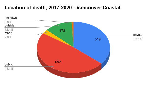 the next thing the update looks at is the location of death. this is one thing where the vancouver region is really different from other parts of the province.