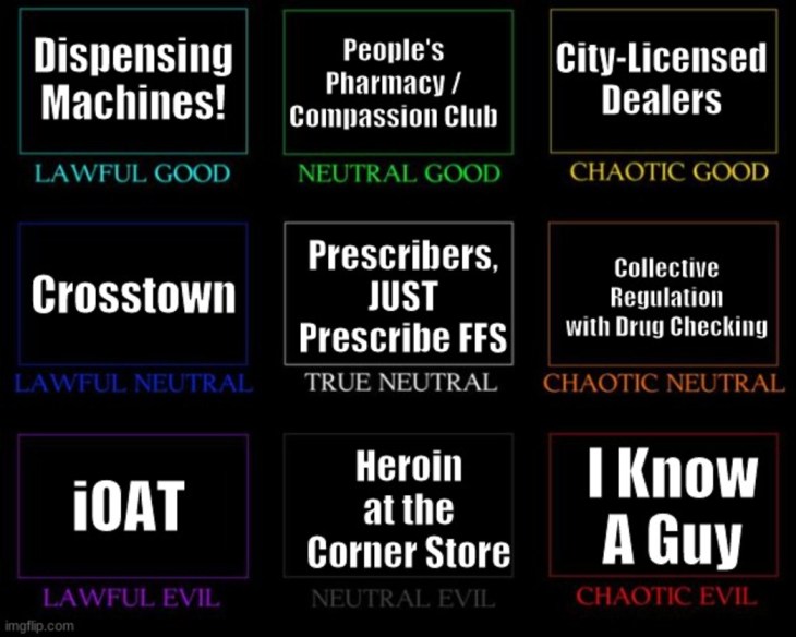 if, in march, when the Risk Mitigation guidelines were released, doctors had stepped up and stated publicly, in whatever way, “Yes! if you use drugs, you *are* at risk of fatal OD, i can at least prescribe this, i know its not perfect, lets start somewhere! out in public, let’s go!” and IF, in response, users had said, “FUK YES LETS GO we’ll figure this out” and through the power of *peer pressure* many more doctors got on board, and many more users all over the province did the same, where would we be now?