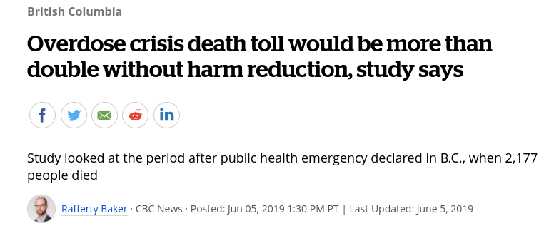 The illicit market is sufficient proof that we don’t have “universal health care” in canada. While usually people think “two-tier, fancy private health clinics etc” – ie people for whom public health care is not good enough – which we’re not ok with, we also have thousands of people buying drugs of unknown composition on the street, who have no access to the public system which has rejected them. we criminalize them.