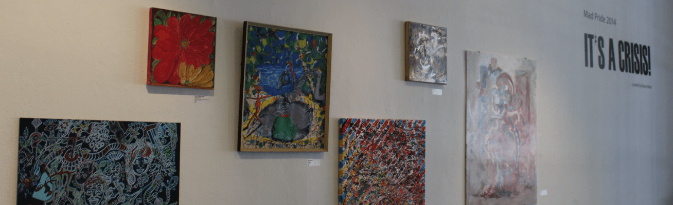 At the end of this week, we open our annual Mad Pride show at Gallery Gachet. Its subtheme this year is a response to what’s gone on in this room and others – that is, It’s A Crisis! Mad Pride is an international movement which advocates for human rights within the psychiatric system, and calls for a re-examination of definitions of mental health within the context of a world gone mad. Mad Pride is also a reclaiming of words like Mad – crazy, lunatic, nutters – that have been used to oppress us. We reclaim the systems that have designated us outside of mainstream society, and we assert our right to challenge these labels, and the society that stigmatizes us.